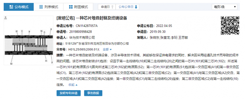 國家知識產(chǎn)權(quán)局官網(wǎng)消息,4月5日華為技術(shù)有限公司公開了一項芯片相關(guān)專利。該項名為"一種芯片堆疊封裝及終端設(shè)備"的專利,涉及半導(dǎo)體技術(shù)領(lǐng)域,其能夠在保證供電需求的同時,解決因采用硅通孔技術(shù)而導(dǎo)致的成本高的問題。