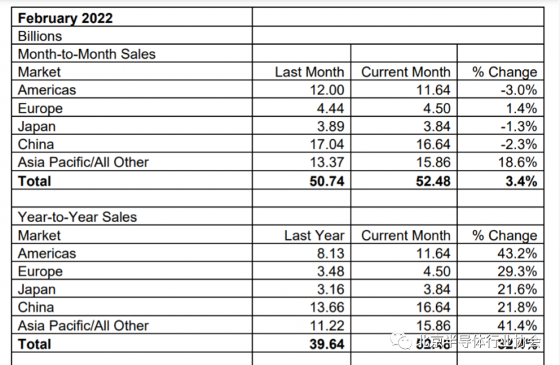 半導體行業(yè)協(xié)會(SIA)5日報告顯示,2022年2月全球半導體行業(yè)銷售額為525億美元,較2021年2月同比增長32.4%,較2022年1月環(huán)比增長3.4%。SIA總裁兼首席執(zhí)行官JohnNeuffer表示:“全球半導體銷售在2月份保持強勁,連續(xù)11個月同比增長超過20%。”