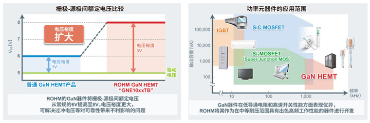 一般而言,GaN器件具有優(yōu)異的低導(dǎo)通電阻和高速開關(guān)性能,因而作為有助于降低各種電源的功耗和實現(xiàn)外圍元器件小型化的器件被寄予厚望。但其柵極耐壓很低,在開關(guān)工作時的器件可靠性方面存在問題。針對這一課題,ROHM的新產(chǎn)品通過采用自有的結(jié)構(gòu),成功地將柵極-源極間額定電壓從常規(guī)的6V提高到了8V。這樣,在開關(guān)工作過程中即使產(chǎn)生了超過6V的過沖電壓*3,器件也不會劣化,從而有助于提高電源電路的設(shè)計裕度和可靠性。此外,該系列產(chǎn)品采用支持大電流且具有出色散熱性的通用型封裝,這使得安裝工序的操作更容易。