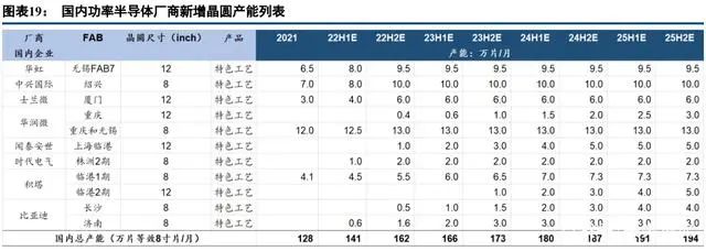 截止 2020 年 12 年全球晶圓產(chǎn)能約為 2082 萬片/月(等效 8 寸),中國(guó)大陸晶圓產(chǎn)能占比為 15.3%,預(yù)計(jì)為 318.4 萬片/月(等效 8 寸),國(guó)內(nèi)主要晶圓廠 12 寸產(chǎn)能約 100 萬片/月,8 寸產(chǎn)線約為 115 萬片/月。其中我們統(tǒng) 計(jì)國(guó)內(nèi)所有功率半導(dǎo)體廠商新增產(chǎn)線的產(chǎn)能增量,預(yù)計(jì) 2022 年全年新增功率半導(dǎo)體產(chǎn)能為 18 萬片/月(等效 8 寸),如果假設(shè) 2022 年國(guó)內(nèi)新增電動(dòng)車銷量為 200 萬臺(tái),全球新增 500 萬臺(tái)電動(dòng)車,所需要對(duì)應(yīng)約 250 萬片 8 寸的年產(chǎn)能,對(duì)應(yīng)需要新增 20.8 萬片月產(chǎn)能,而全球功率半導(dǎo)體的新增產(chǎn)能幾乎都在中國(guó),僅僅滿足全球的電 動(dòng)車的需求新增供給尚且不夠,如果考慮光伏需要的產(chǎn)能則供應(yīng)缺口進(jìn)一步增加。