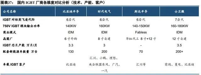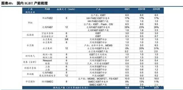 在 IGBT 領(lǐng)域,比亞迪半導(dǎo)體和時(shí)代電氣分別是國(guó)內(nèi)供應(yīng)新能源車規(guī) IGBT 和軌交列車 IGBT 的龍頭廠商, 先發(fā)優(yōu)勢(shì)明顯,士蘭微在在家電領(lǐng)域應(yīng)用為主的 IPM 模塊市場(chǎng)占據(jù)明顯優(yōu)勢(shì),2021 年市占率接近 10%,斯達(dá)半 導(dǎo)在 IGBT 模組領(lǐng)域積累多年,目前已經(jīng)切入 IGBT 芯片的設(shè)計(jì),車規(guī)級(jí) IGBT 模塊已經(jīng)大批量出貨。