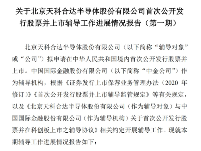 據(jù)披露,北京天科合達(dá)半導(dǎo)體股份有限公司(以下簡(jiǎn)稱“天科合達(dá)”)擬申請(qǐng)?jiān)谥腥A人民共和國(guó)境內(nèi)首次公開(kāi)發(fā)行股票并上市。中金公司作為輔導(dǎo)機(jī)構(gòu),根據(jù)《證券發(fā)行上市保薦業(yè)務(wù)管理辦法(2020年修訂)》《首次公開(kāi)發(fā)行股票并上市輔導(dǎo)監(jiān)管規(guī)定》等有關(guān)規(guī)定,以及《北京天科合達(dá)半導(dǎo)體股份有限公司(作為輔導(dǎo)對(duì)象)與中國(guó)國(guó)際金融股份有限公司(作為輔導(dǎo)機(jī)構(gòu))關(guān)于首次公開(kāi)發(fā)行股票并在科創(chuàng)板上市之輔導(dǎo)協(xié)議》相關(guān)約定開(kāi)展輔導(dǎo)工作。