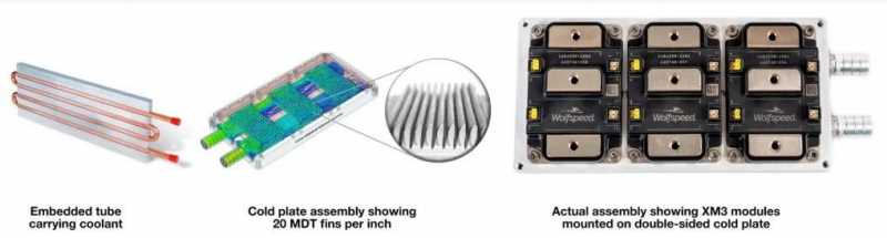 圖3. Wolfspeed 使用 Wieland Microcool 的 MDT 技術(shù),支持 20 片/英寸(FPI)(相比標(biāo)準(zhǔn) 12 FPI),從而降低熱阻,實(shí)現(xiàn)均勻冷卻。