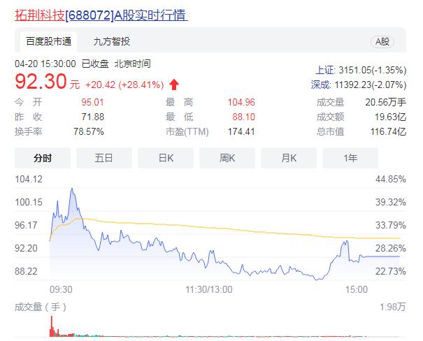 半導(dǎo)體產(chǎn)業(yè)網(wǎng)訊:4月20日,國內(nèi)半導(dǎo)體設(shè)備廠商拓荊科技在上海證券交易所科創(chuàng)板上市,公司證券代碼為688072,發(fā)行價格71.88元/股。截止收盤,首日大漲28.41%,報92.30元,總市值116.74億元。