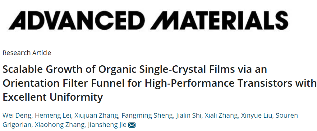 圖 | 揭建勝(來源:揭建勝)近日,相關論文以《定向漏斗過濾有機單晶薄膜大面積生長及其在具有優(yōu)異均一性的高性能場效應晶體管中的應用》(Scalable Growth of Organic Single-Crystal Films via an Orientation Filter Funnel for High-Performance Transistors with Excellent Uniformity)為題,發(fā)表在 Advanced Materials 上 [1]。