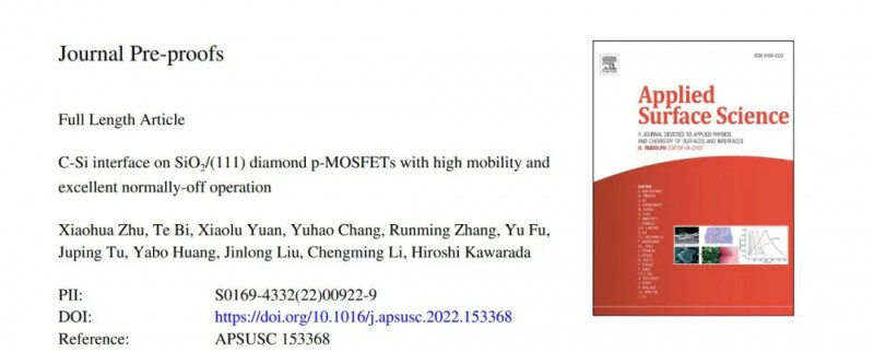 金剛石具有能帶間隙寬、導熱系數(shù)高和載流子遷移率高等優(yōu)良電學特性,在高溫高壓高頻高功率電子器件應(yīng)用領(lǐng)域前景廣闊。然而,金剛石基電子器件從材料制備到器件應(yīng)用這一過程的實現(xiàn)還存在諸多挑戰(zhàn)。為了推動金剛石材料電子器件的發(fā)展,加快國內(nèi)外金剛石基MOSFETs的研究進程,近日,北京科技大學碳基材料與功能薄膜團隊劉金龍副研究員與早稻田大學Hiroshi Kawarada教授課題組合作的最新成果以“C-Si interface on SiO2 /(111) diamond p-MOSFETs with high mobility and excellent normally-off operation”為題發(fā)表在《Applied Surface Science》期刊上,第一作者為北京科技大學博士生朱肖華。