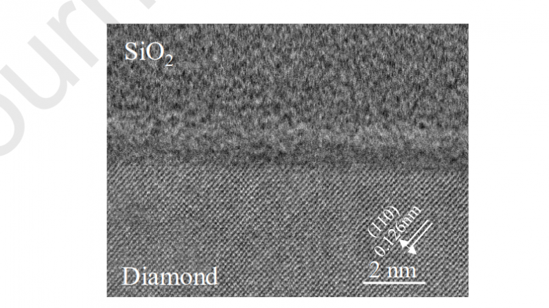 圖4:SiO2/(111)金剛石界面的HRTEM圖。