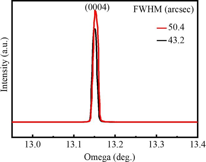 圖三. 8英寸4度偏角(4° off-axis)SiC晶片(0004)面的X射線搖擺曲線