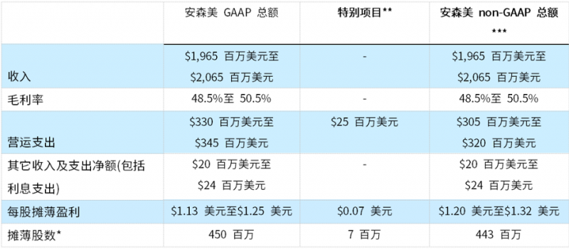 下表概列安森美預(yù)計(jì)2022年第2季度的GAAP及non-GAAP展望: