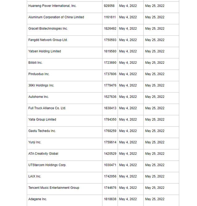 半導(dǎo)體產(chǎn)業(yè)網(wǎng)5月5日電,根據(jù)美國(guó)SEC官網(wǎng)顯示,該機(jī)構(gòu)周三又將包括京東、嗶哩嗶哩、拼多多在內(nèi)的88家中概股加入“預(yù)摘牌”名單,使得名單上的中概股數(shù)量上升至105家。