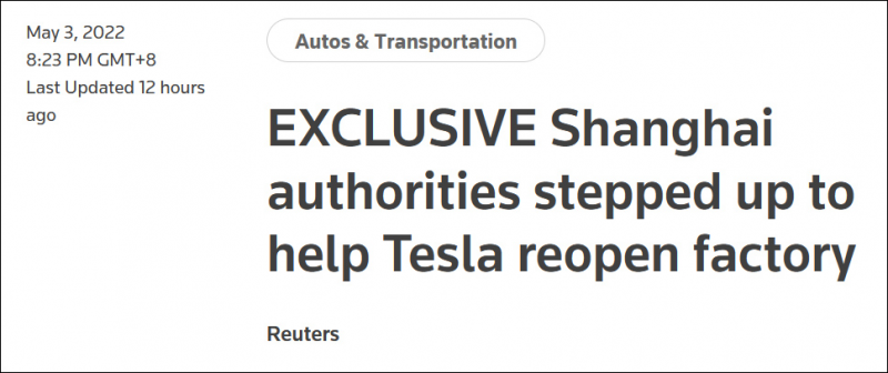 受上海新冠肺炎疫情影響,特斯拉上海超級工廠一度停工22天,造成近50000輛汽車減產(chǎn)。不過,在上海當?shù)卣闹С窒?,其已?月19日又重新開工,特斯拉因此向上海臨港特區(qū)政府送出了一封“感謝信”。