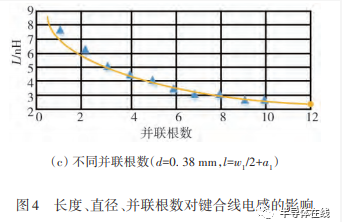 參照文獻(xiàn)[30]對(duì)鍵合線進(jìn)行仿真,結(jié)果如圖 4所示。經(jīng)驗(yàn)證與式(1)的數(shù)據(jù)擬合結(jié)果基本一致。