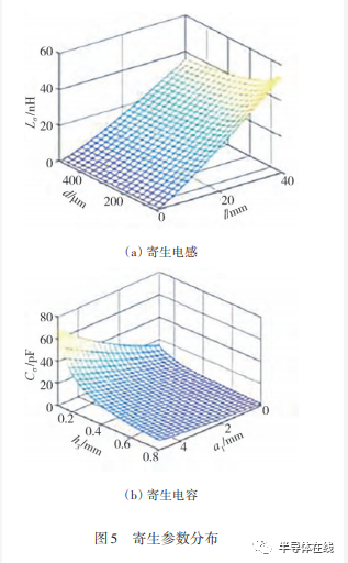 寄生參數(shù)分布仿真結(jié)果如圖 5 所示,經(jīng)驗(yàn)證與式(1)和式(2)的數(shù)據(jù)擬合結(jié)果基本一致。