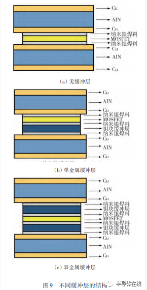 (1)由于銀和 SiC 芯片背面材料熱膨脹系數(shù)不同引起的問(wèn)題,可通過(guò)添加金屬緩沖層來(lái)改善互連性能,但會(huì)增加功率模塊封裝工藝的復(fù)雜性和成本。采用滿足性能指標(biāo)和可靠性的燒結(jié)層代替緩沖層,成為研發(fā)的可行性方案。
