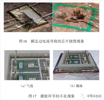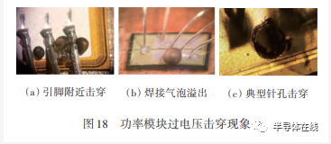 各種原因?qū)е碌墓β誓K的真實(shí)失效現(xiàn)象如圖13~圖19所示。其中功率模塊里的續(xù)流二極管發(fā)生短路和集電極-發(fā)射極擊穿燒斷等是常見(jiàn)的失效現(xiàn)象。