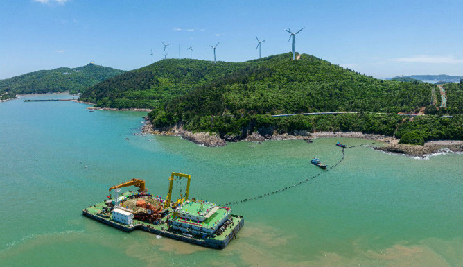 近日,由中國能建浙江院設(shè)計(jì)的全球首條35千伏低頻海底電纜在臺(tái)州市大陳島順利入海。