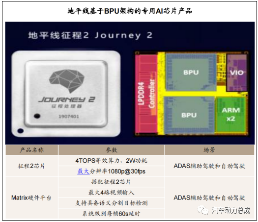 如地平線自主設(shè)計研發(fā)了AI專用的ASIC芯片:Brain Processing Unit(BPU),可提供設(shè)備端上軟硬結(jié)合的嵌入式人工智能解決方案。基于BPU的征程2芯片可提供超過 4TOPS 的等效算力,典型功耗僅 2 瓦,能夠高效靈活地實現(xiàn)多類 AI 任務(wù)處理,對多類目標(biāo)進行實時檢測和精準(zhǔn)識別。征程2充分體現(xiàn)了BPU架構(gòu)強大的靈活性,全方位賦能汽車智能化。