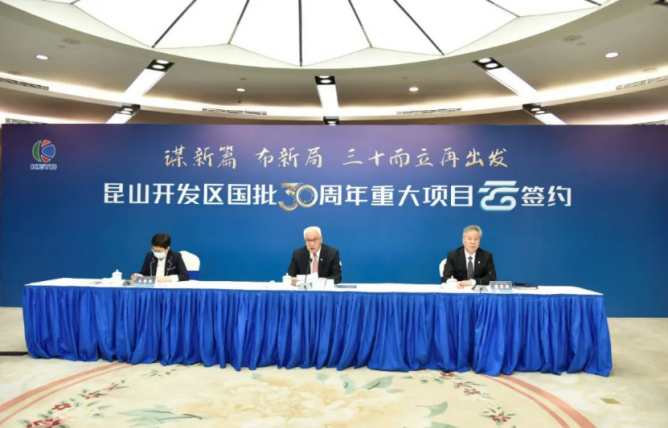 日前,昆山開(kāi)發(fā)區(qū)舉行昆山開(kāi)發(fā)區(qū)國(guó)批30周年重大項(xiàng)目“云簽約”活動(dòng),總投資超100億元的9個(gè)項(xiàng)目以視頻形式簽約落地。