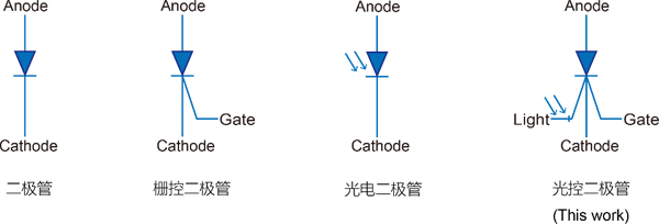未來集成電路的發(fā)展呈現(xiàn)出多元化發(fā)展趨勢,其中光電芯片可實現(xiàn)光傳輸及信息處理功能。通過與現(xiàn)代電子芯片技術的底層融合,支撐未來大容量、低功耗、集成化與智能化信息芯片技術的發(fā)展需求。其中,二極管作為一種重要的基本電學元件,在集成電路、大功率驅動、光學成像等領域具有重要應用,其結構和功能也十分豐富(圖1)。