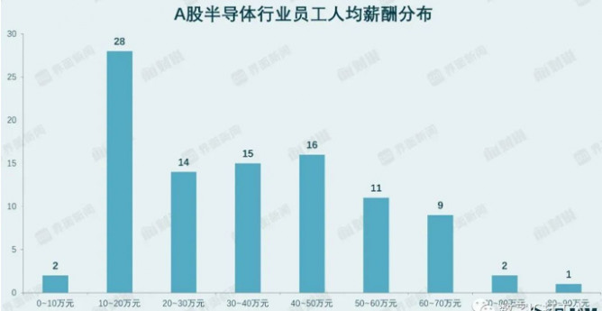 據(jù)A股半導(dǎo)體公司2021年薪資漲幅數(shù)據(jù),2021年,98家申萬(wàn)半導(dǎo)體行業(yè)公司人均薪酬中位數(shù)為33.51萬(wàn)元,相比2020年的26.4萬(wàn)元上漲26.9%。其中,人均薪酬漲幅最高的紫光國(guó)微漲弧達(dá)109%,英集芯、賽微微電、芯原股份等多家半導(dǎo)體企業(yè),漲幅也超過(guò)60%。