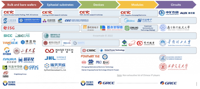 日前,專利分析機構(gòu)Knowmade發(fā)布針對碳化硅(SiC)產(chǎn)業(yè)鏈知識產(chǎn)權(quán)報告,從襯底、外延到器件、模塊各環(huán)節(jié)梳理了不同國家廠商與研究機構(gòu)專利布局。