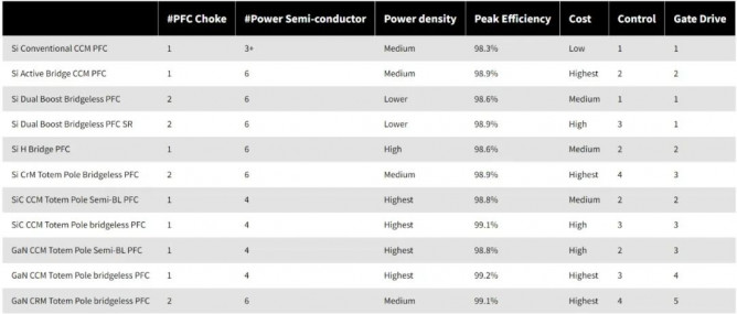 ▲ 圖 5:無橋 PFC 解決方案和技術(shù)的比較