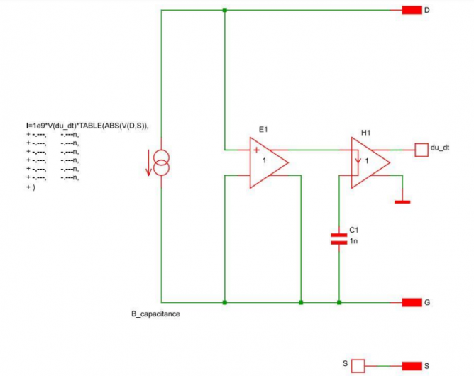 圖7. Cgd的模型。Cgs和Cds的模型相同,但容值不同。