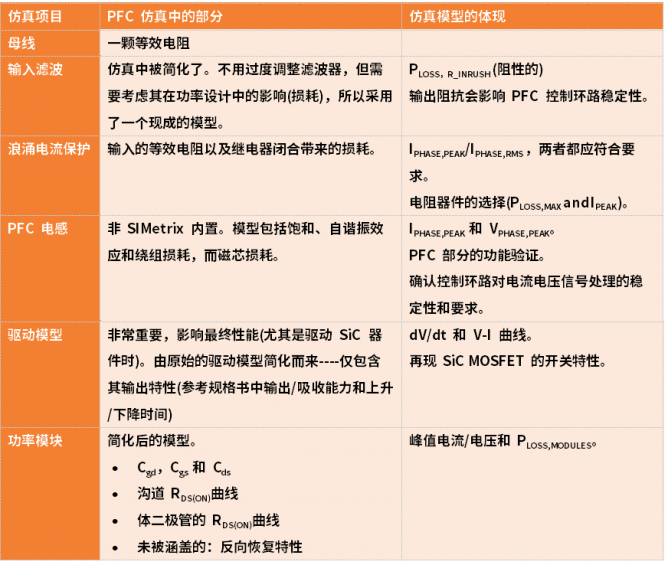 表1. 仿真模型總結(jié):仿真包含的部分以及在仿真模型中的體現(xiàn)