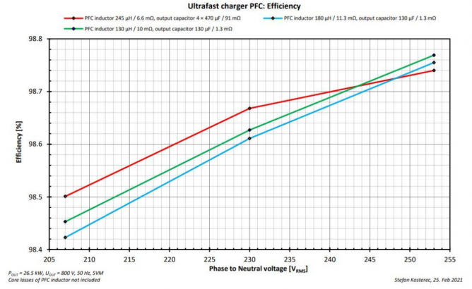 圖8. PFC部分的效率和輸入電壓值、感值和輸出容值的關(guān)系