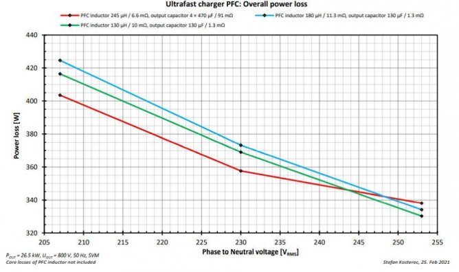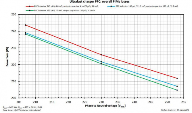 圖9. PFC部分的損耗和輸入電壓值、感值和輸出容值的關(guān)系