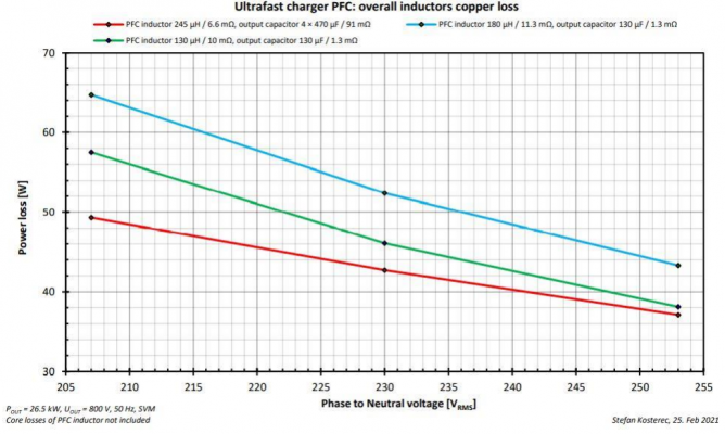 圖10. PFC部分的電感損耗和輸入電壓值、感值和輸出容值的關(guān)系