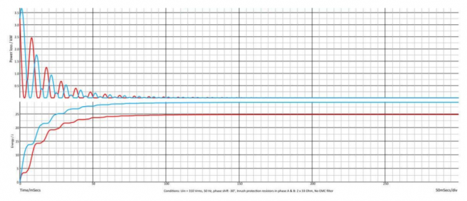一般來說,浪涌電流的仿真能夠驗(yàn)證由電阻產(chǎn)生的最大能量耗散,從而幫助選擇正確的元器件。