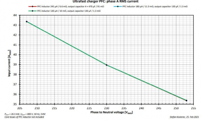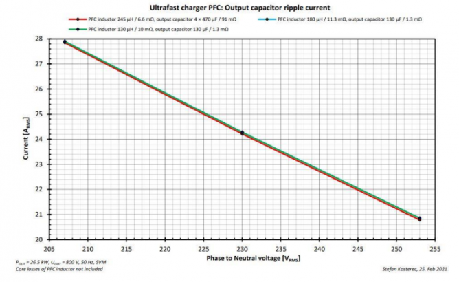圖28告訴我們電容的輸出電流不會(huì)隨著電感或電容值的變化而急劇變化。另外,±10%的輸入相電壓VPHASE變化會(huì)帶來約±15%的紋波電流變化(圖29)。