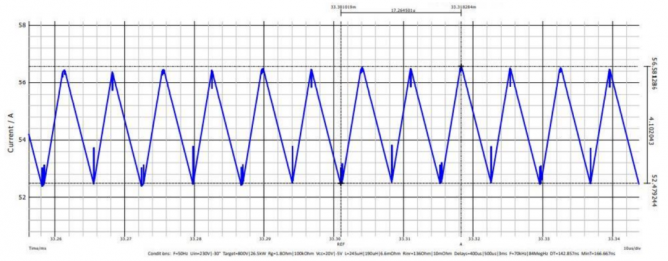 如表1提到的,徹底了解電感電流對(duì)設(shè)計(jì)性能優(yōu)異的PFC電感很有幫助。設(shè)計(jì)或選擇一個(gè)合適的電感,我們需要考慮以下4個(gè)關(guān)鍵的電流值,他們都可以通過仿真得到。