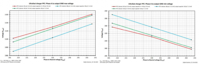 圖26. A相到直流負(fù)輸出(-VDC)的最大電壓差(a)和最小電壓差(b)和輸入電壓值、感值和輸出容值的關(guān)系