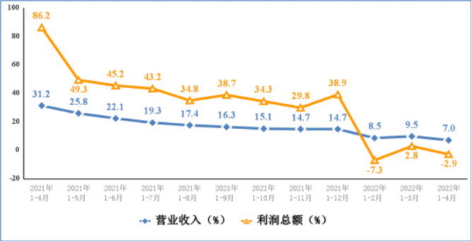 電子信息制造業(yè)營業(yè)收入、利潤總額累計增速