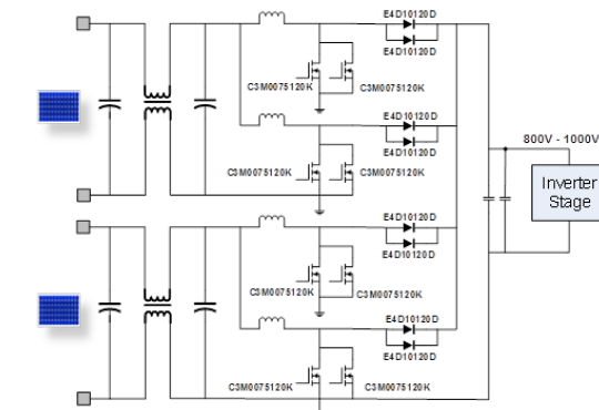 SiC 已經(jīng)是一種成熟的技術(shù),并成為需要電力傳輸系統(tǒng)的一種非常常見的解決方案,特別是在儲(chǔ)能應(yīng)用中,如電動(dòng)汽車充電和附加電池的太陽能系統(tǒng)。這些系統(tǒng)一般包含幾個(gè)應(yīng)用 SiC 技術(shù)的器件,如 DC/DC 升壓轉(zhuǎn)換器,雙向逆變器(交流電和直流電互相轉(zhuǎn)換),和靈活的電池充電電路。簡而言之,SiC 使系統(tǒng)效率提高了 3%,功率密度提高了 50%,并減少了無源元件的體積和成本。