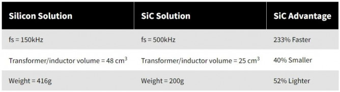 ▲ 圖 7:SiC 和 Si 在尺寸和重量上的對比