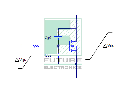 對門極的電容反饋有可能會導致半導體器件產(chǎn)生誤導通動作。而如果使用的是SiC器件,那么通常需要考慮米勒電容所帶來的電容反饋。由米勒效應帶來的電容反饋可能會導致管子的誤動作,更有甚者可能導致上下管直通,引起短路現(xiàn)象的發(fā)生,以至損壞功率器件,其產(chǎn)生的具體機理可參考下圖: