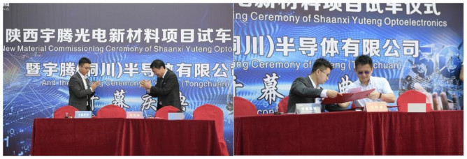 作為銅川新材料產(chǎn)業(yè)園區(qū)第一家臺資企業(yè),其深厚的臺灣半導(dǎo)體頂尖團(tuán)隊技術(shù)班底及項目未來發(fā)展的良好趨勢,得到了省市各級領(lǐng)導(dǎo)的重點關(guān)注。試車儀式現(xiàn)場,陜西省臺辦主任、銅川市委常委、副市長及重要政府部門領(lǐng)導(dǎo)悉數(shù)到達(dá),為宇騰(銅川)半導(dǎo)體光電新材料GaN項目的成功開啟送上深切關(guān)心與祝福。與此同時,來自全國多地近40余家科技半導(dǎo)體企業(yè)及高校、科研院所負(fù)責(zé)人與代表抵達(dá)現(xiàn)場,共同見證這一盛事。其中,兩家下游客戶企業(yè)負(fù)責(zé)人在試車儀式現(xiàn)場,與陜西宇騰簽署合作開發(fā)訂單,年采購量共計1.52億元。