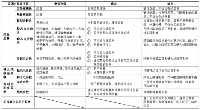 表2各類IGBT模塊監(jiān)測參數(shù)手段及其優(yōu)缺點(diǎn)