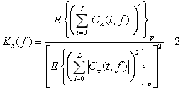當(dāng)故障發(fā)生時(shí),電流信號所含的能量發(fā)生瞬間變化,因此也可以通過計(jì)算對應(yīng)的熵值或者譜峭度方法,對變化的瞬態(tài)信號進(jìn)行檢測。文獻(xiàn)[7]等針對CRH3型動車組整流器單管故障和雙管故障,采用改進(jìn)譜峭度方法并結(jié)合電流均值法對整流器發(fā)出的固定脈沖響應(yīng)實(shí)現(xiàn)故障診斷,改進(jìn)的譜峭度如公式2計(jì)算得到。