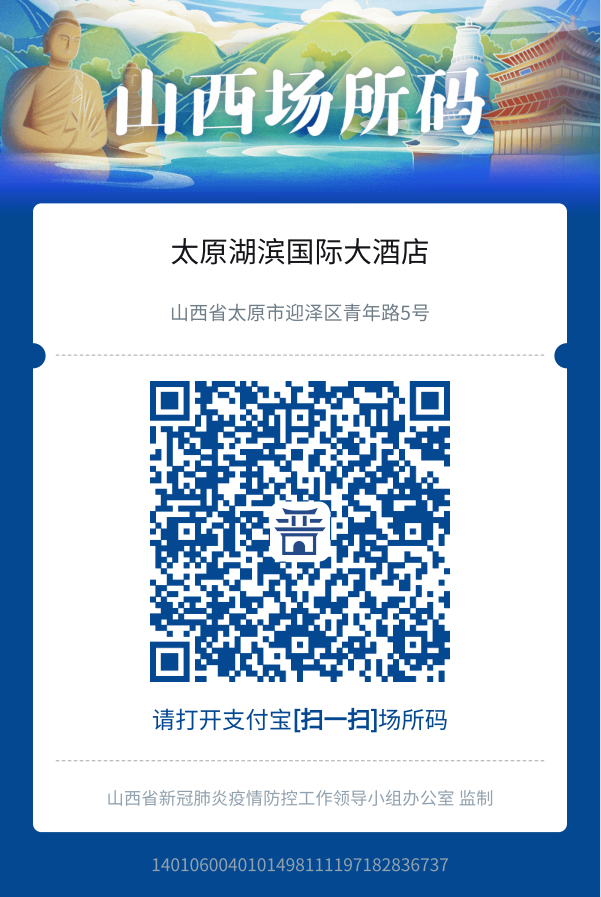 ②為便于出入機場\高鐵站\火車站,及順利入住酒店,需提前用支付寶掃一掃下面場所碼填寫當(dāng)?shù)貓鏊a,(預(yù)計出差時間8月15日,地點:山西太原市,迎澤區(qū),湖濱國際大酒店),顯示綠碼方可抵達(dá)太原。