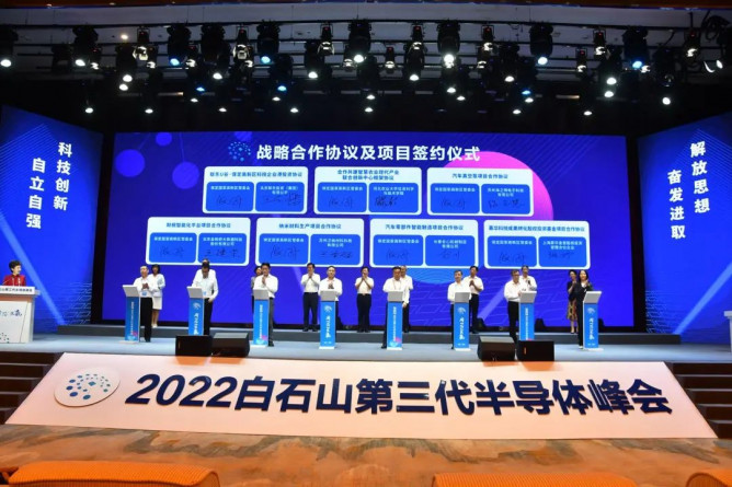 8月6日,以“同‘芯’共贏”為主題的2022白石山第三代半導體峰會在河北淶源召開。本屆峰會由保定市人民政府、河北省科學技術協(xié)會、河北省發(fā)展和改革委員會、河北省工業(yè)和信息化廳、河北省科學技術廳、第三代半導體產業(yè)技術創(chuàng)新戰(zhàn)略聯(lián)盟主辦單位。保定國家高新區(qū)管委會、保定市科學技術協(xié)會、保定市發(fā)展和改革委員會、保定市工業(yè)和信息化局、保定市科學技術局、淶源縣人民政府承辦,河北省半導體產業(yè)聯(lián)盟、河北同光半導體股份有限公司、CPE源峰協(xié)辦。