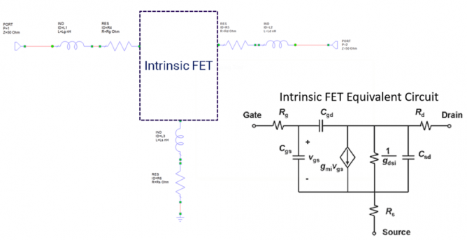 圖 1:Wolfspeed 3 端口大信號 HEMT 模型和 FET 等效電路