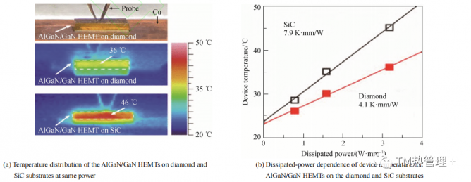 圖 4 金剛石及 SiC 基 GaN HEMTs 器件性能對比測試