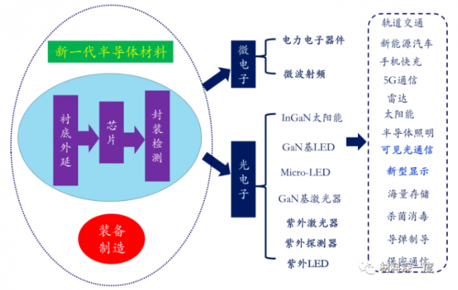 第三代半導(dǎo)體包括碳化硅(SiC)、氮化鎵(GaN)、氮化鋁(AlN)、金剛石、氧化鎵等,具有禁帶寬、擊穿電場(chǎng)強(qiáng)度高、飽和電子遷移速率高、熱導(dǎo)率大、介電常數(shù)小、抗輻射能力強(qiáng)等優(yōu)點(diǎn)。以第三代半導(dǎo)體材料為基礎(chǔ)制備的電子器件在半導(dǎo)體照明、新一代移動(dòng)通信、新一代快充電源、雷達(dá)、新能源汽車、軌道交通和航空航天等領(lǐng)域都有重要應(yīng)用,對(duì)國(guó)家的產(chǎn)業(yè)升級(jí)、節(jié)能減排和國(guó)防安全具有重要戰(zhàn)略意義,是新基建、消費(fèi)電子和軍事國(guó)防的核心元器件,也是當(dāng)前全球信息制造產(chǎn)業(yè)競(jìng)爭(zhēng)焦點(diǎn)。以GaN基LED為基礎(chǔ)的半導(dǎo)體照明形成了千億美元規(guī)模的產(chǎn)業(yè),年節(jié)電近兩千億度;以SiC基MOSFET和AlGaN/GaN HEMT結(jié)構(gòu)為代表的功率器件正在顯著影響和改變?nèi)藗兊纳罘绞?,SiC是目前能實(shí)現(xiàn)萬(wàn)伏千安的唯一材料,可實(shí)現(xiàn)電力電子裝置的緊湊化和小型化(體積減小40%,能量損耗減少50%),是電動(dòng)汽車逆變器的不可缺少核心器件;GaN是同時(shí)實(shí)現(xiàn)高頻、大寬帶和大功率的唯一材料,基于AlGaN/GaN HEMT結(jié)構(gòu)的微波功率器件是5G基站和相控陣?yán)走_(dá)發(fā)射單元的核心;GaN是唯一覆蓋從紅外到紫外的半導(dǎo)體材料,基于GaN材料的光電器件在可見光通信、新型顯示、殺菌消毒、海量存儲(chǔ)、導(dǎo)彈制導(dǎo)等方面有重要應(yīng)用。