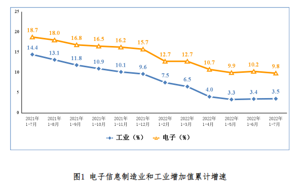8月30日,工信部公布電子信息制造業(yè)運(yùn)行情況。2022年1—7月份我國電子信息制造業(yè)生產(chǎn)穩(wěn)定增長,出口規(guī)模繼續(xù)擴(kuò)大。生產(chǎn)方面,1-7月份,規(guī)模以上電子信息制造業(yè)增加值同比增長9.8%,增速分別超出工業(yè)、高技術(shù)制造業(yè)6.3和3.9個(gè)百分點(diǎn)。其中,7月份,規(guī)模以上電子信息制造業(yè)增加值同比增長7.3%。