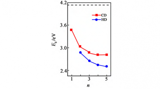 圖4 兩側氫化二維(111)金剛石的帶隙隨著 層 數(shù) 變 化 的 關系[11]