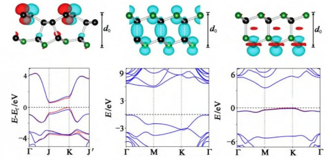 圖5 3種氮終端二維金剛石(層數(shù)n=2)構型與能帶結構[29]